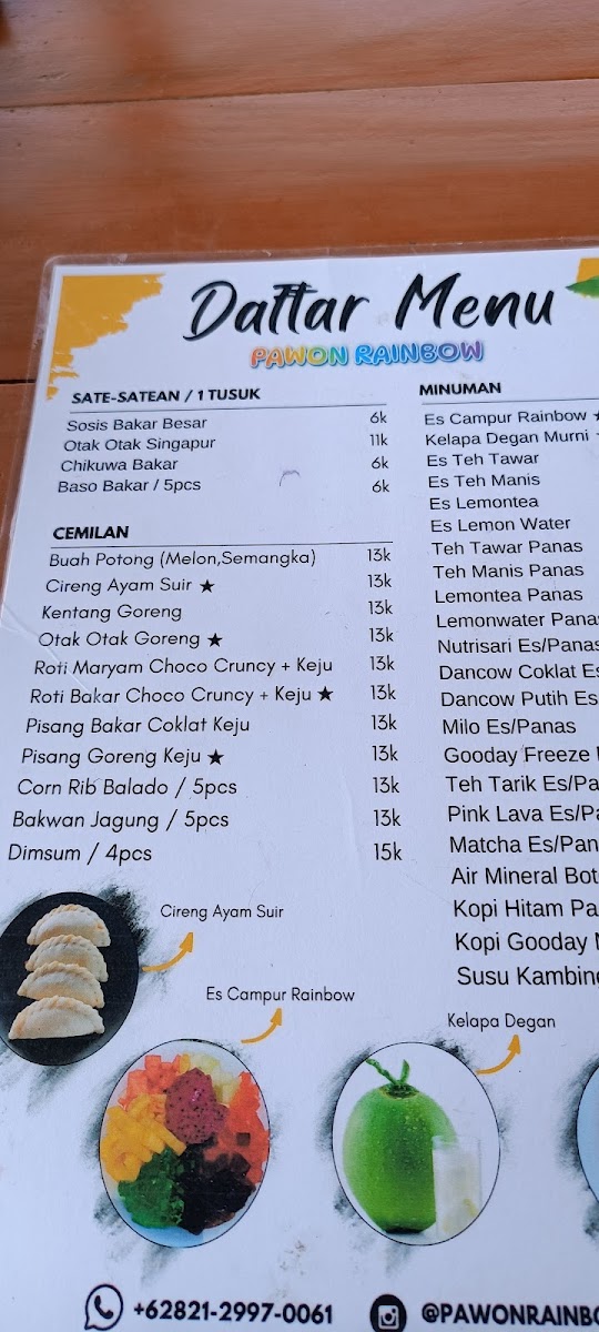 Welcome to Pawon Rainbow, a hidden gem in the heart of Kuningan, West Java. This inviting restaurant offers a diverse menu perfect for both casual diners and food enthusiasts. The culinary creations here shine, with standout dishes like the flavorsome mie nyemek, where you can customize the spice level to your palate. Immerse yourself in the hearty portions that often serve two, making it a great choice for sharing.